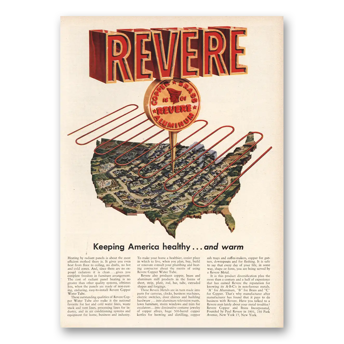 1955 Revere Copper + Brass Print Ad | America