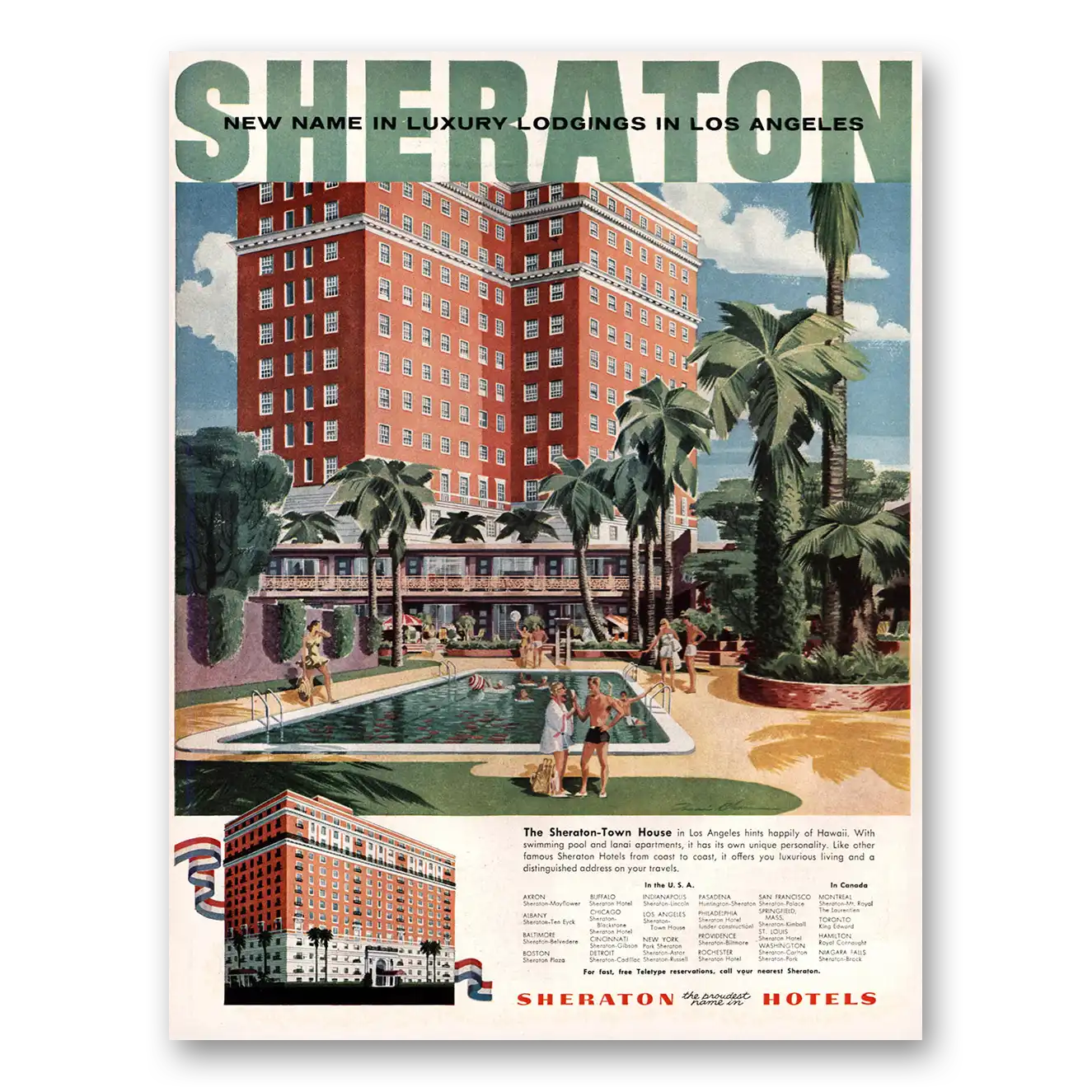 1955 Sheraton Town House Hotel Print Ad | Luxury Lodgings Los Angeles