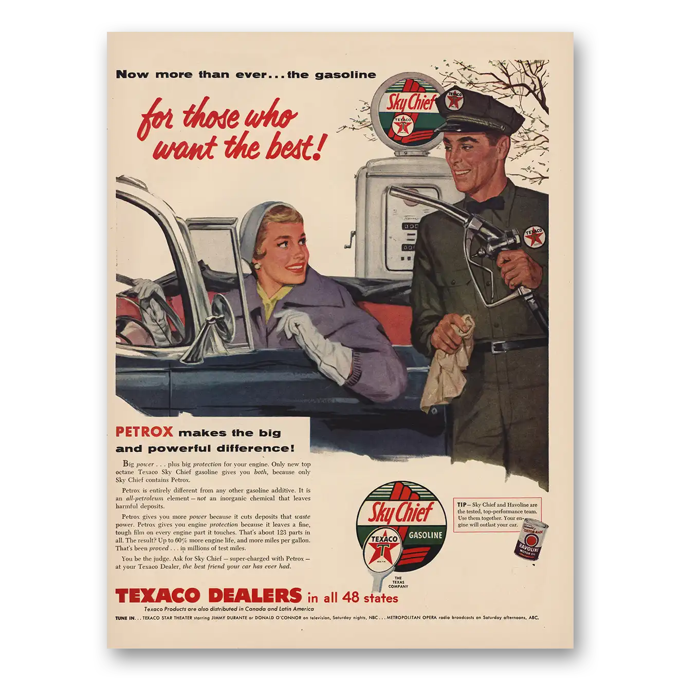 1955 Texaco Sky Chief Gasoline Print Ad | Want The Best