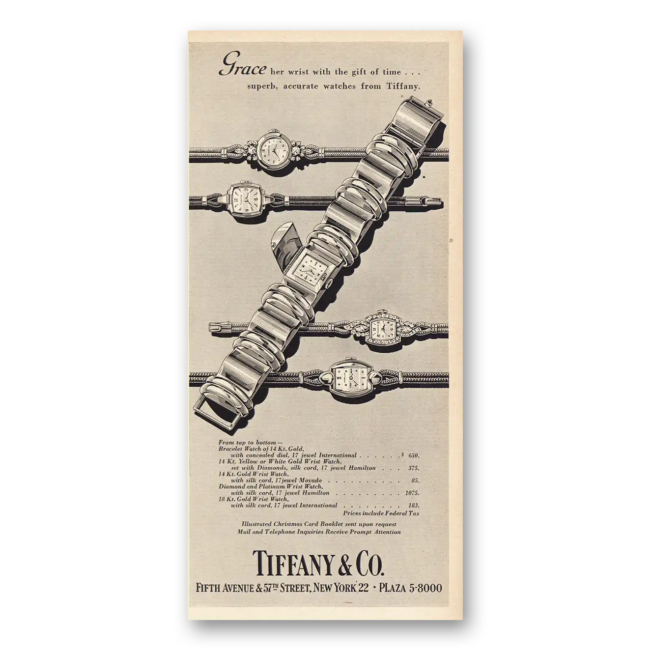 1955 Tiffany & Co Print Ad | Grace Her Wrist Watch