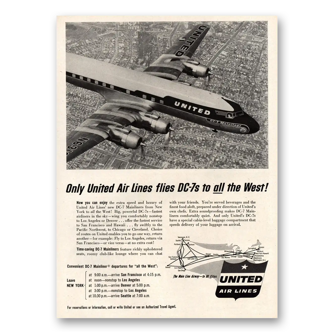 This is an original 1955 United Airlines print ad published by United Airlines.