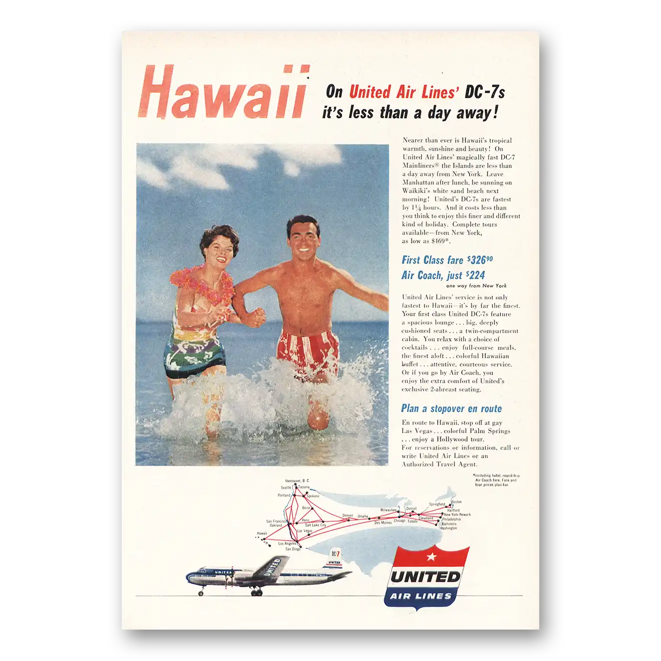 1955 United Airlines Print Ad | Hawaii Dc7s