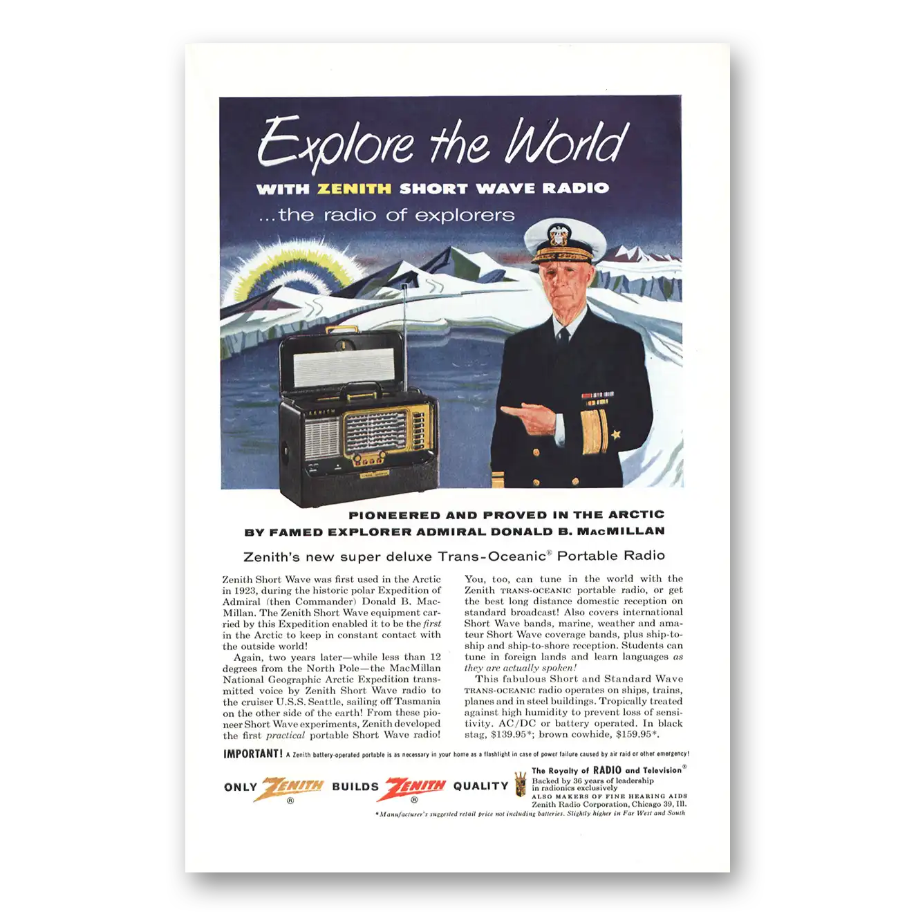 1955 Zenith Radio Print Ad | Short Wave Radio Explore World Macmillan1955 Zenith Radio Print Ad | Short Wave Radio Explore World Macmillan