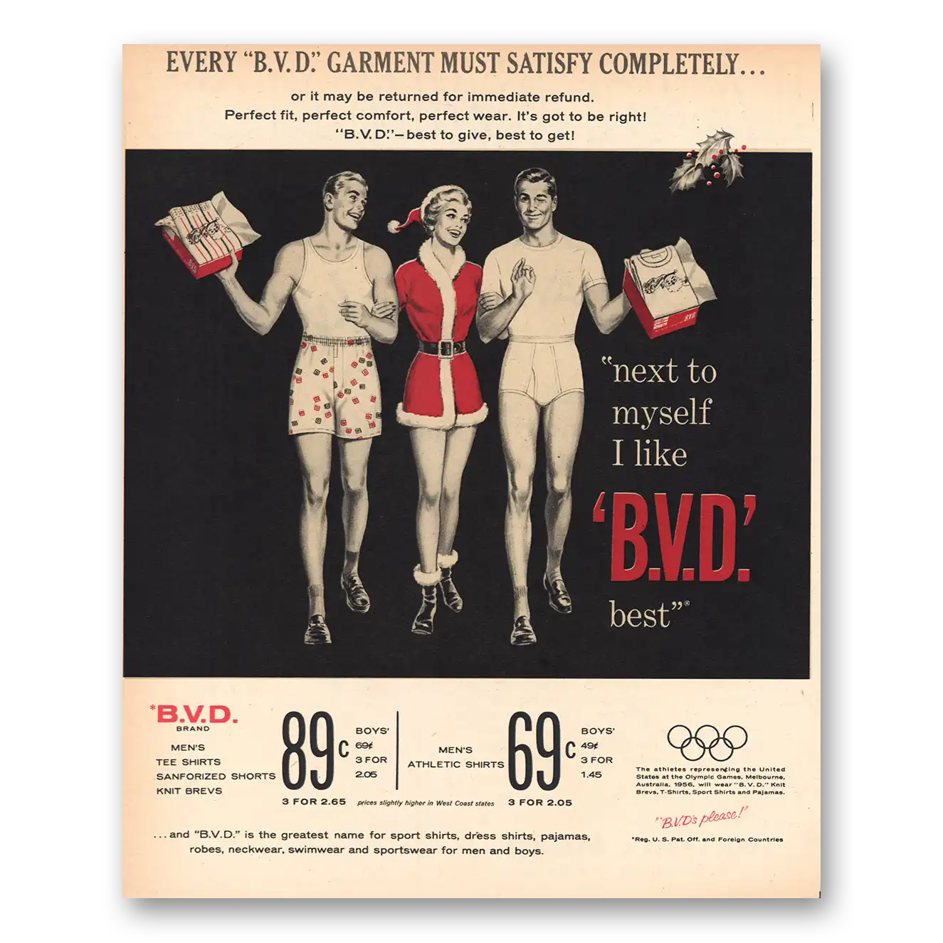 1956 BVD Company Print Ad | Christmas