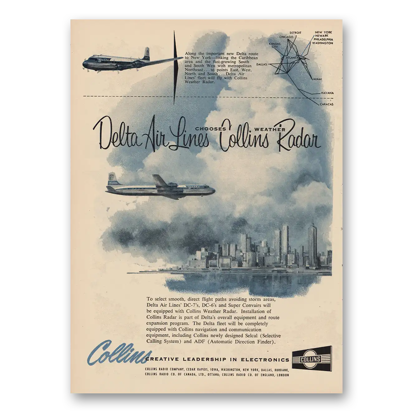 1956 Collins Weather Radar Print Ad | Delta Air Lines