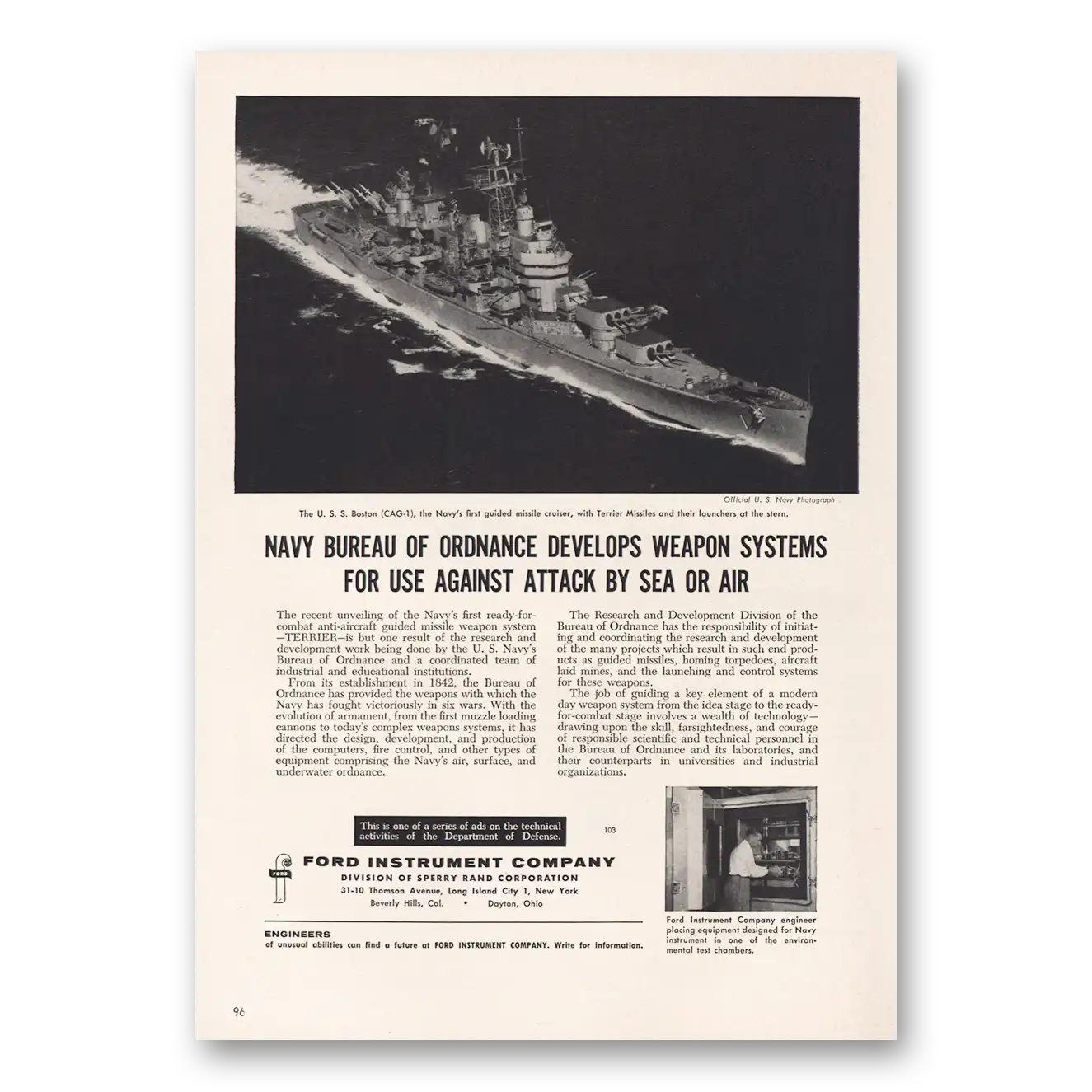 This is an original 1956 Ford Instrument print ad published by Ford Instrument Co.