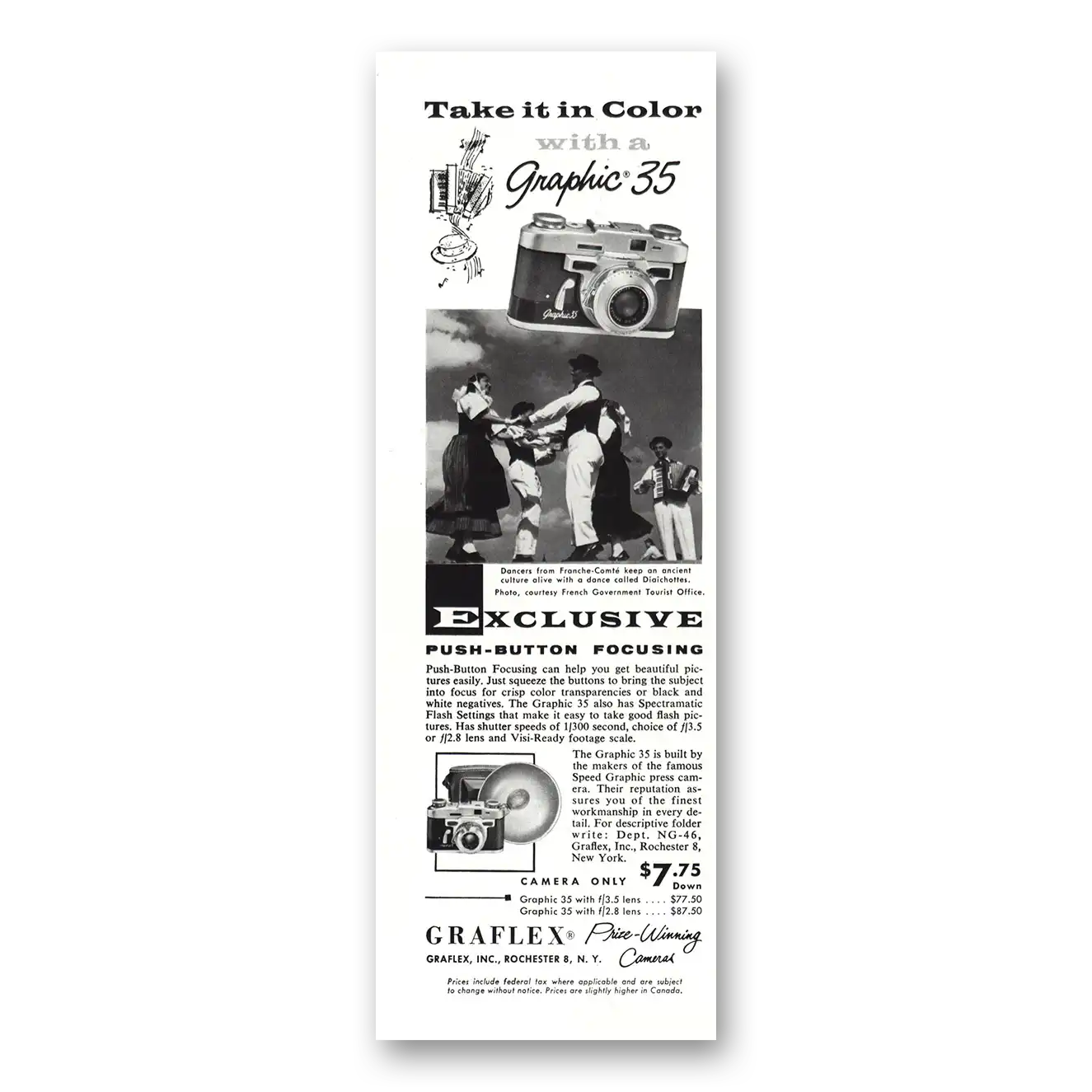 1956 Graflex Graphic 35 Camera Print Ad | In Color