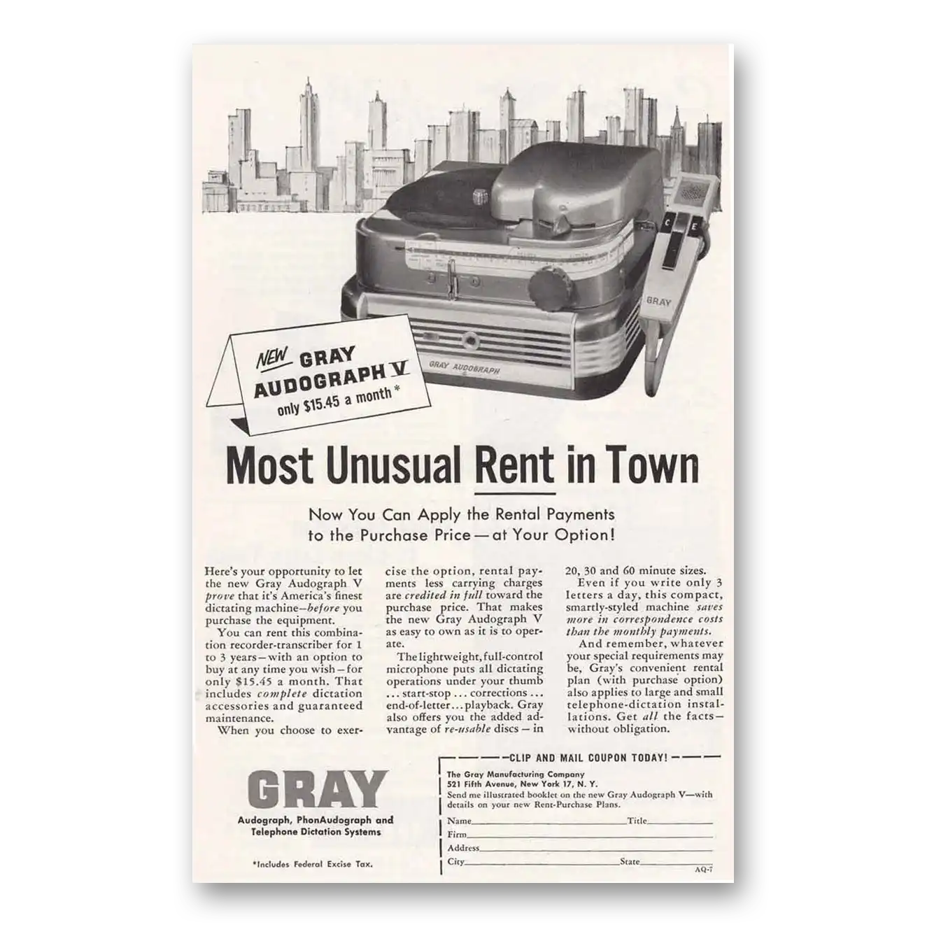 1956 Gray Manufacturing Print Ad | Audograph V