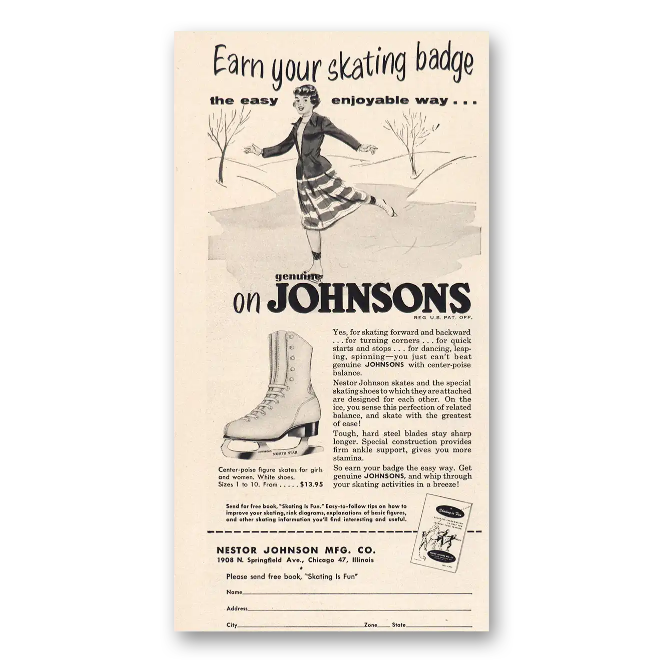 1956 Johnson Figure Skates Print Ad | Skating Badge