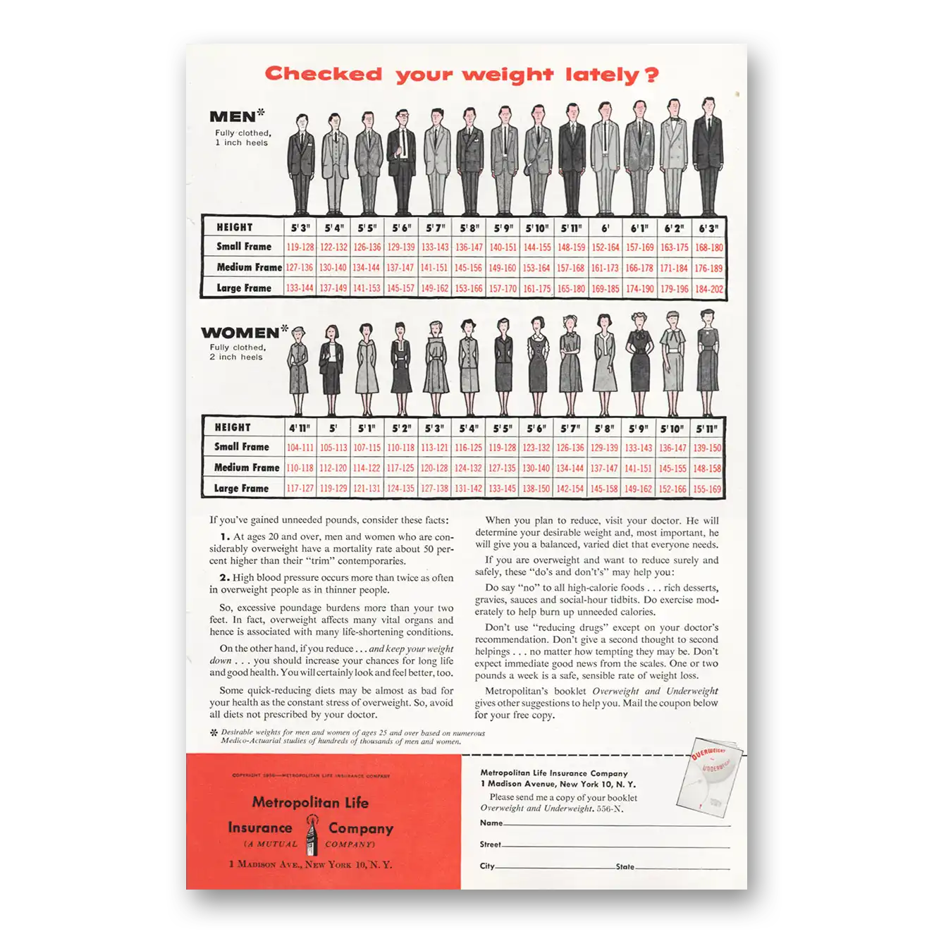 1956 Metropolitan Life Insurance Print Ad | Checked Weight