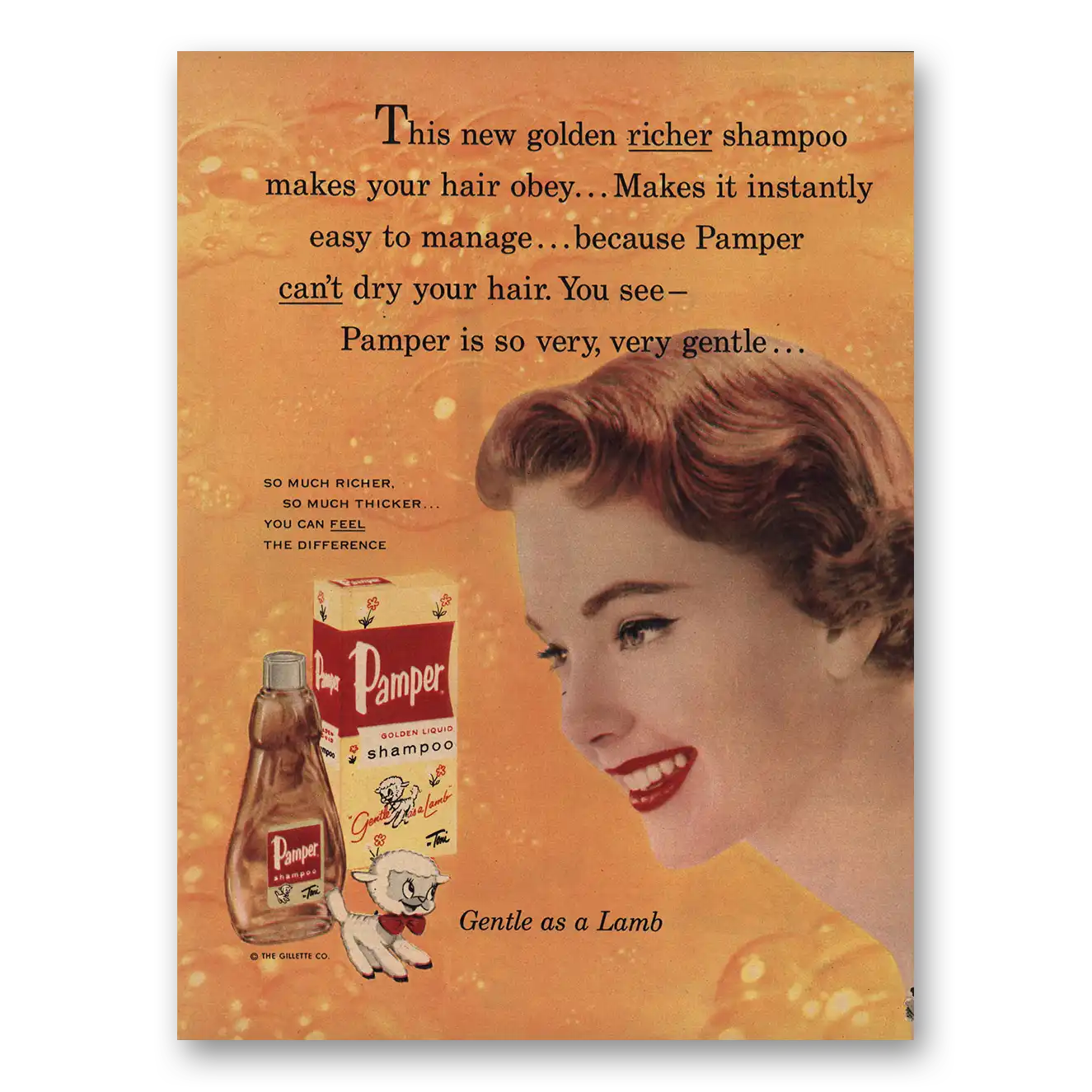 1956 Pamper Shampoo Print Ad | Gentle As Lamb