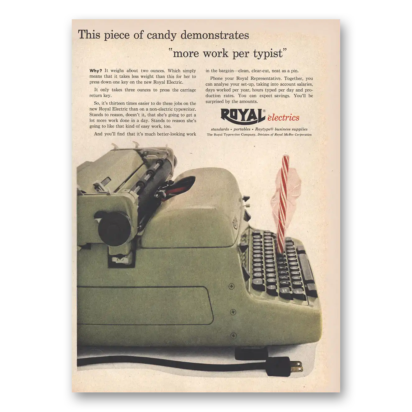 1956 Royal Typewriter Print Ad | Candy