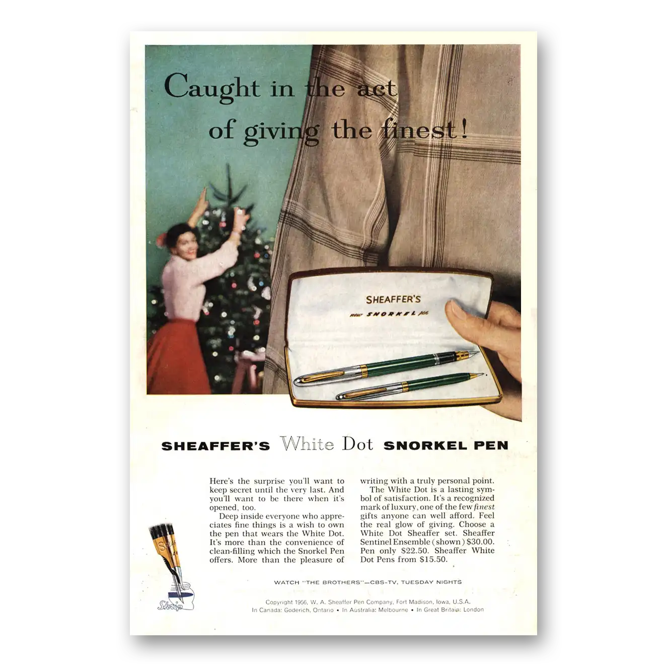 1956 Sheaffers Snorkel Pen Print Ad | Giving Finest