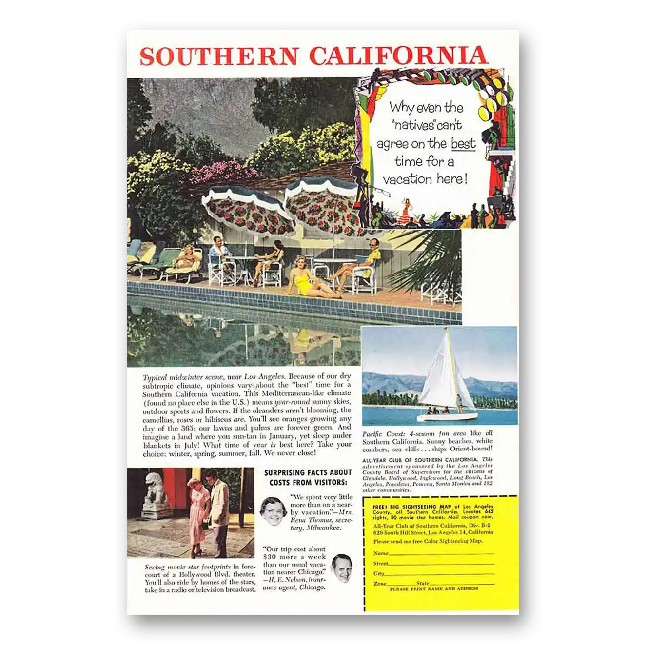 This is an original 1956 Southern California print ad published by Southern California Tourism.