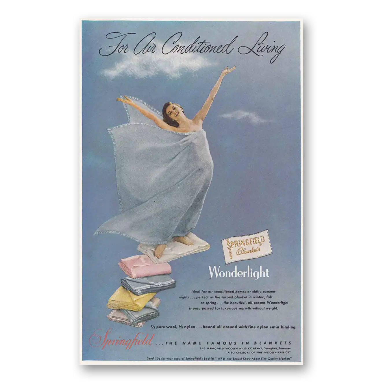 1956 Springfield Blankets Print Ad | Blankets Wonderlight