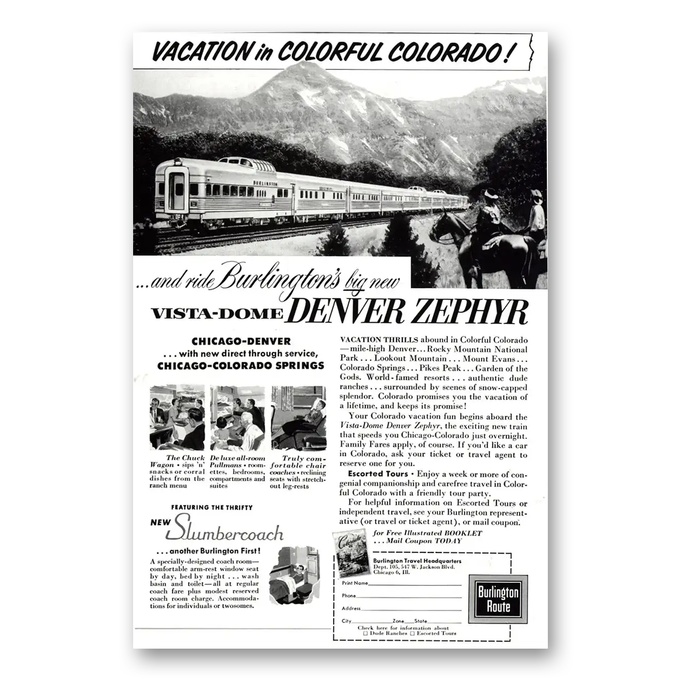 1957 Burlington Route Print Ad | Denver Zephyr
