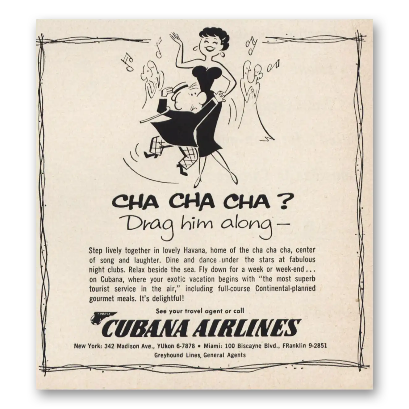 1957 Cubana Airlines Print Ad | Cha Cha