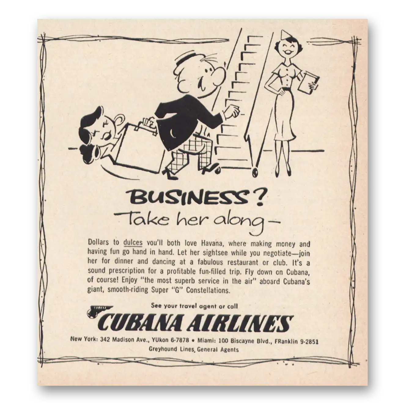 1957 Cubana Airlines Print Ad | Take Her Along1957 Cubana Airlines Print Ad | Take Her Along