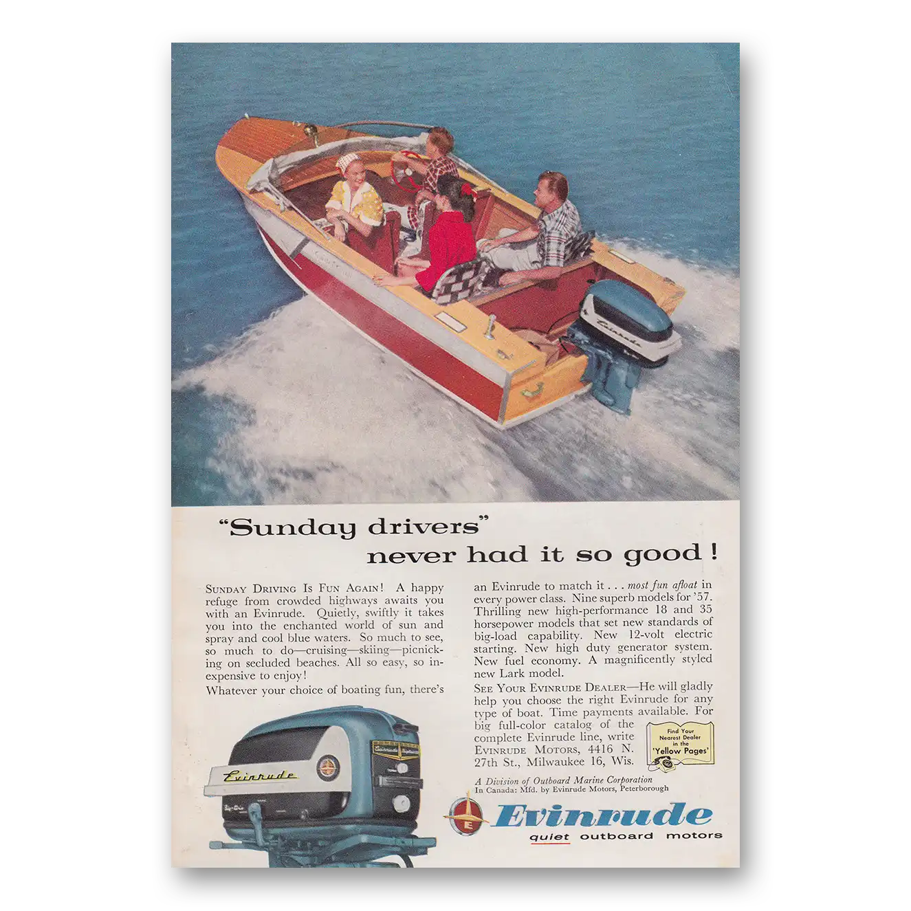 This is an original 1957 Evinrude print ad published by Evinrude.