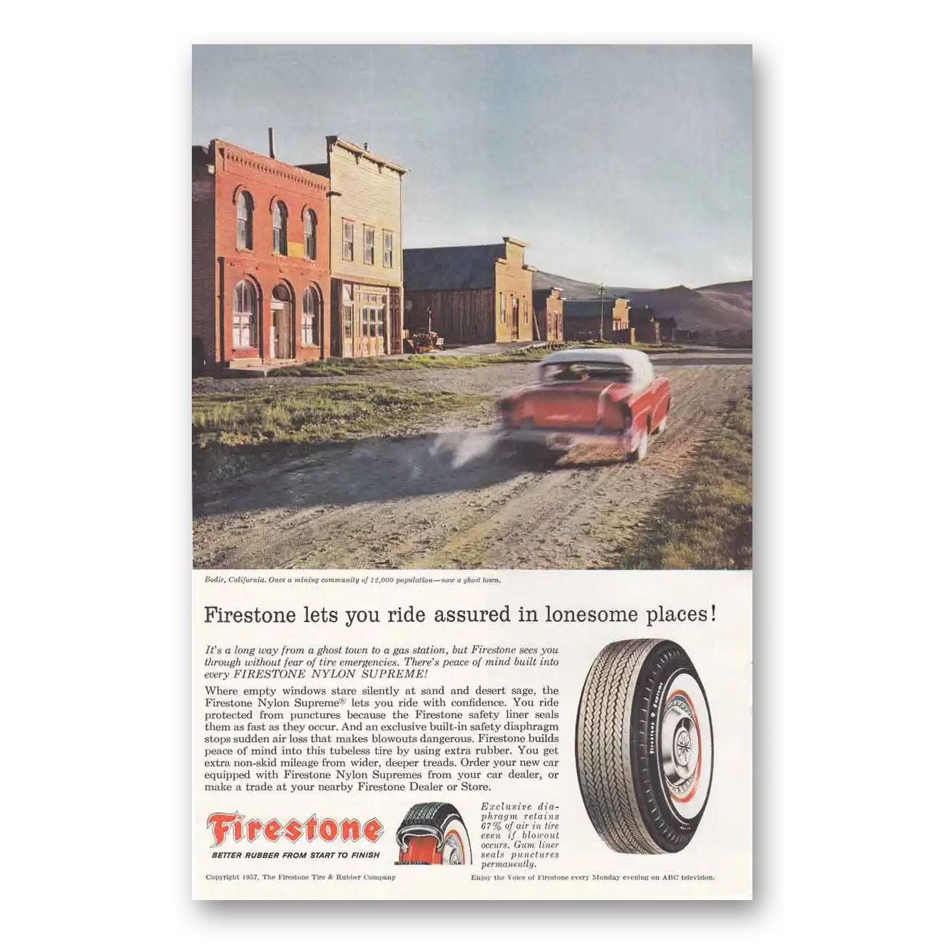 1957 Firestone Tires Print Ad | Bodie California
