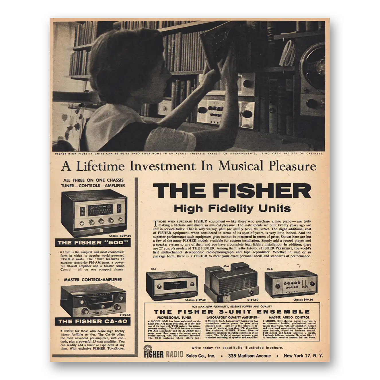 1957 Fisher Radio Print Ad | High Fidelity Units