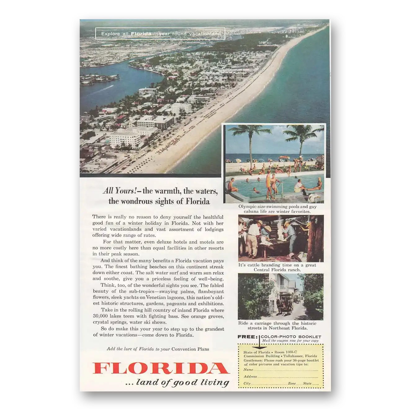 This is an original 1957 Florida print ad published by Florida Tourism.