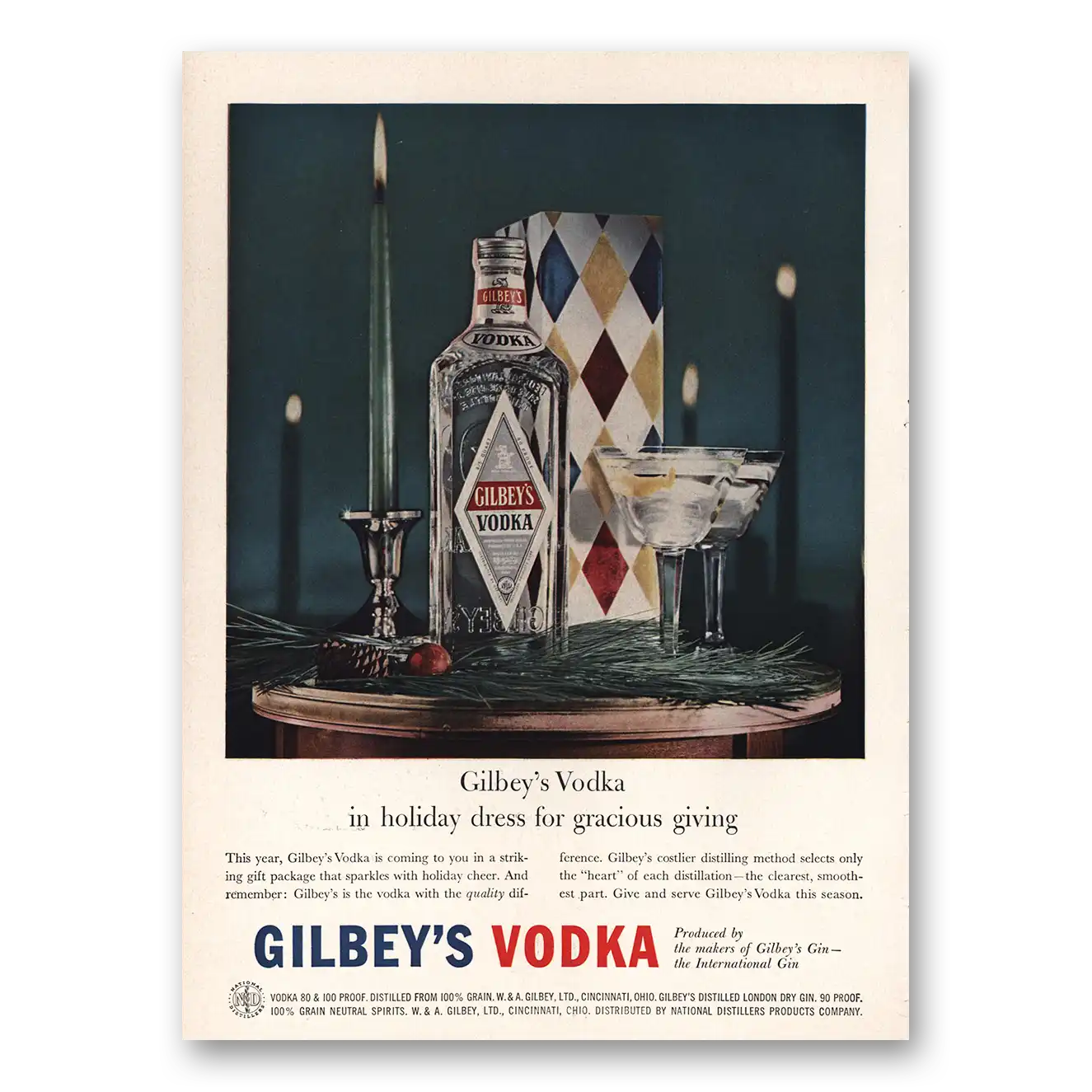 This is an original 1957 Gilbeys Vodka print ad published by Gilbeys.
