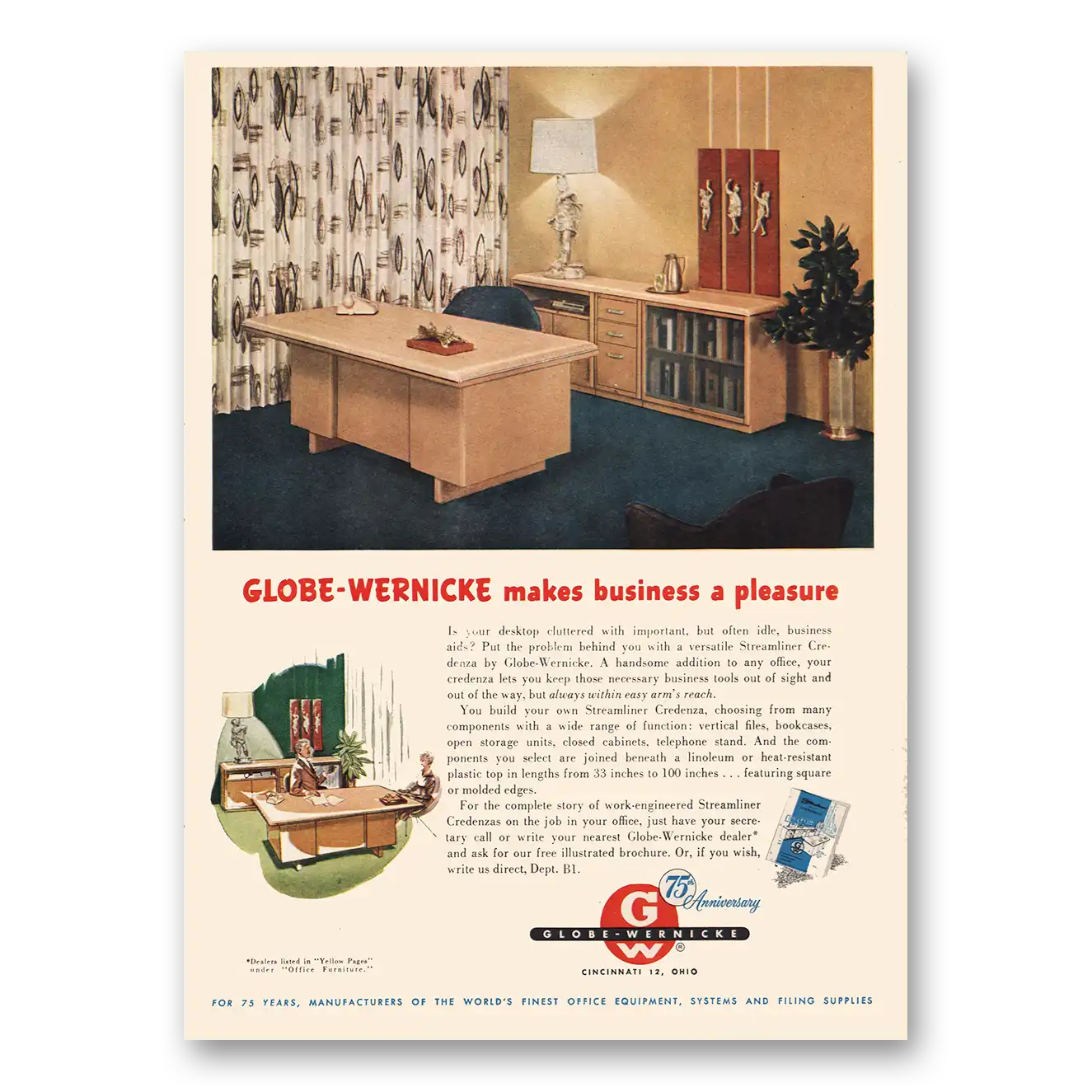 1957 Globe Wernicke Print Ad | Makes Business Pleasure