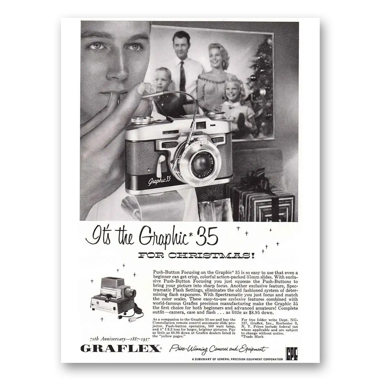 1957 Graflex Graphic 35 Camera Print Ad | Christmas