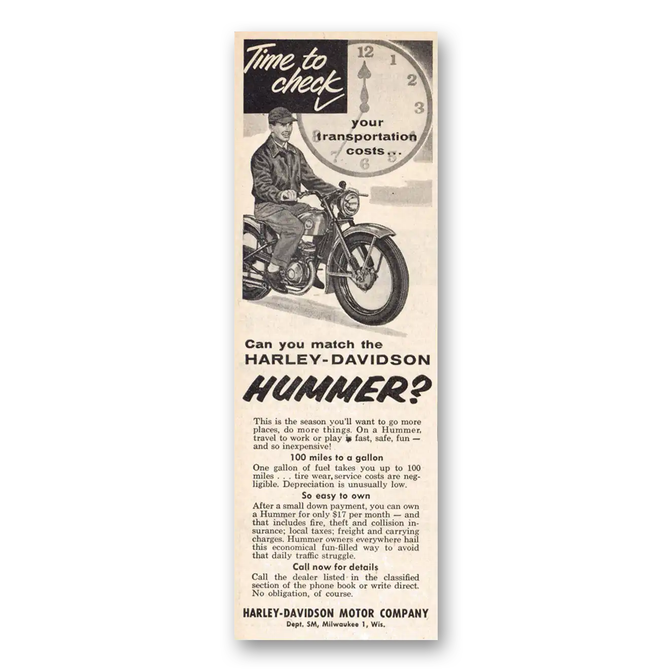 1957 Harley Davidson Hummer Print Ad | Time To Check