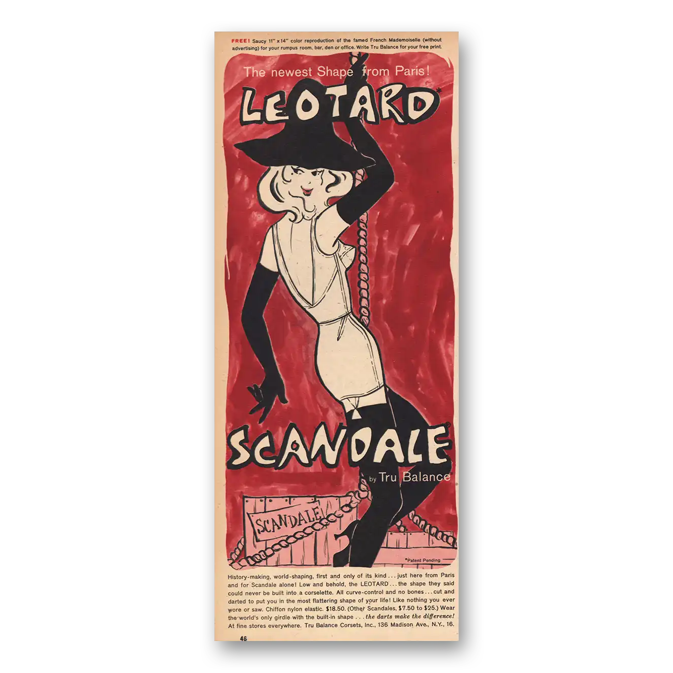 This is an original 1957 Leotard Scandale print ad published by Tru Balance.