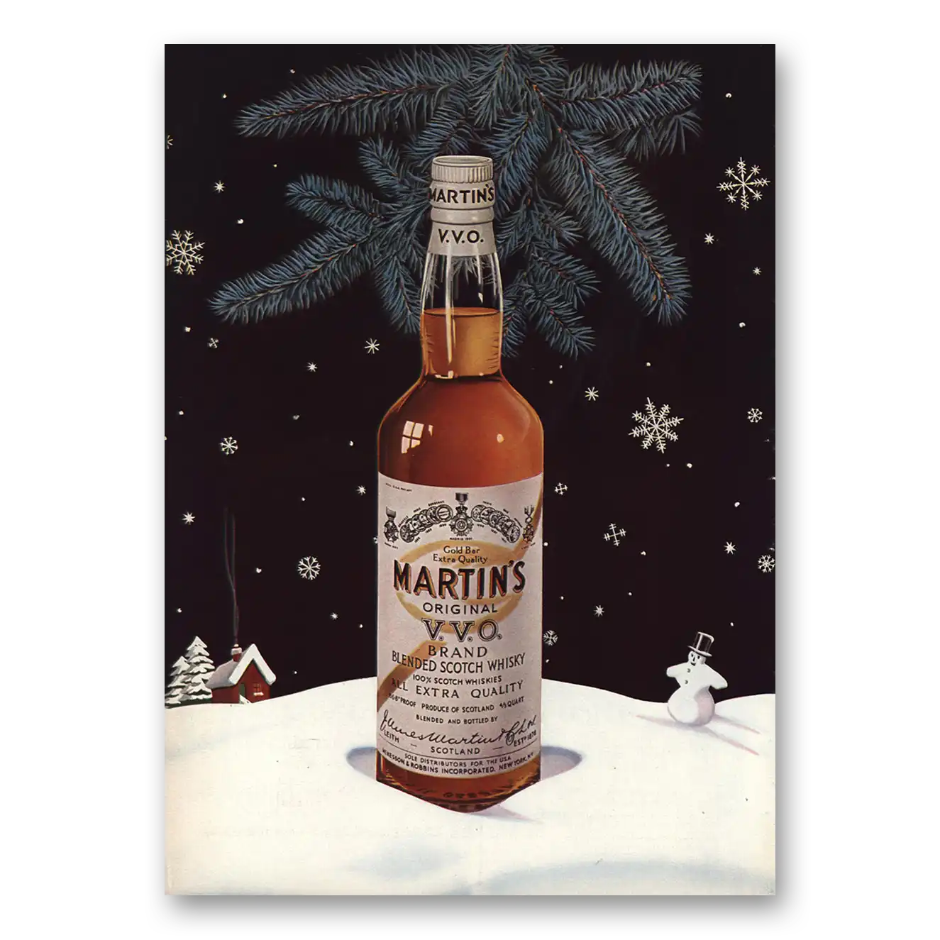 1957 Martins Whisky Print Ad | Christmas Snowman