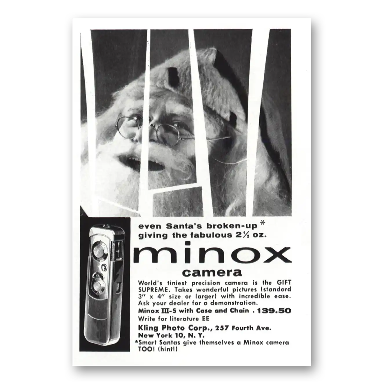 1957 Minox Camera Print Ad | Santas Broken Up
