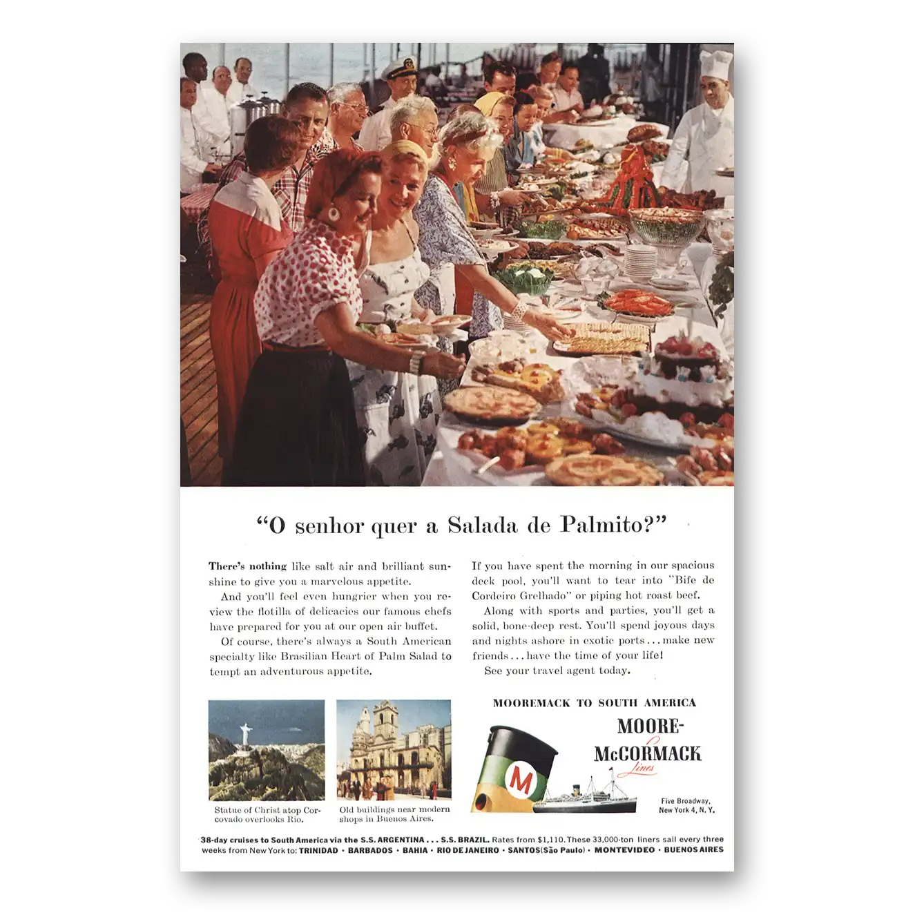 1957 Moore McCormack Lines Print Ad | Buffet Salada De Palmito1957 Moore McCormack Lines Print Ad | Buffet Salada De Palmito