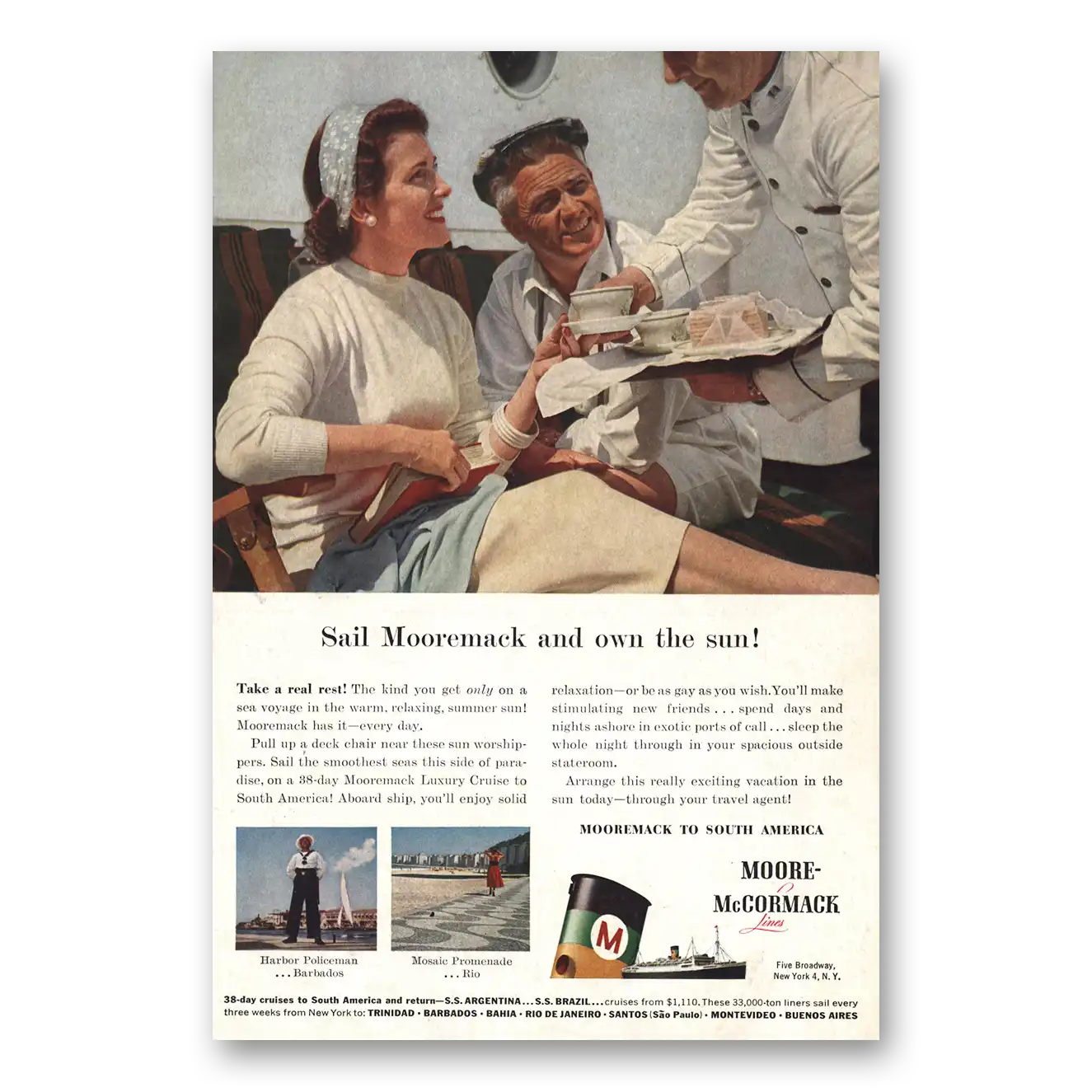 1957 Moore McCormack Lines Print Ad | Sail Mooremack