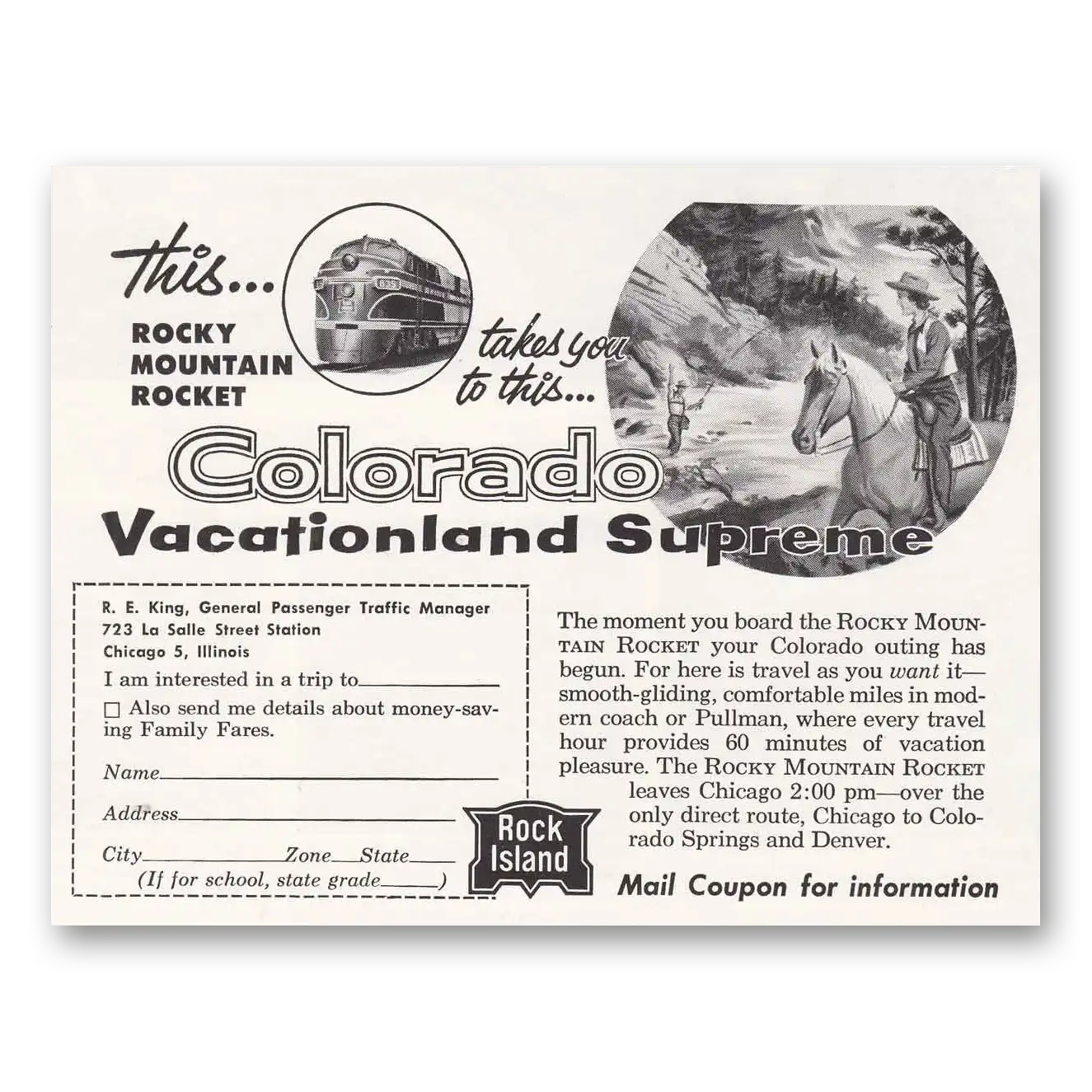 1957 Rock Island Lines Print Ad | Rocky Mountain Rocket
