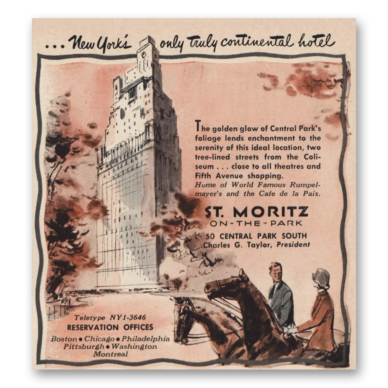 1957 St Moritz on the Park Print Ad | Continental Hotel