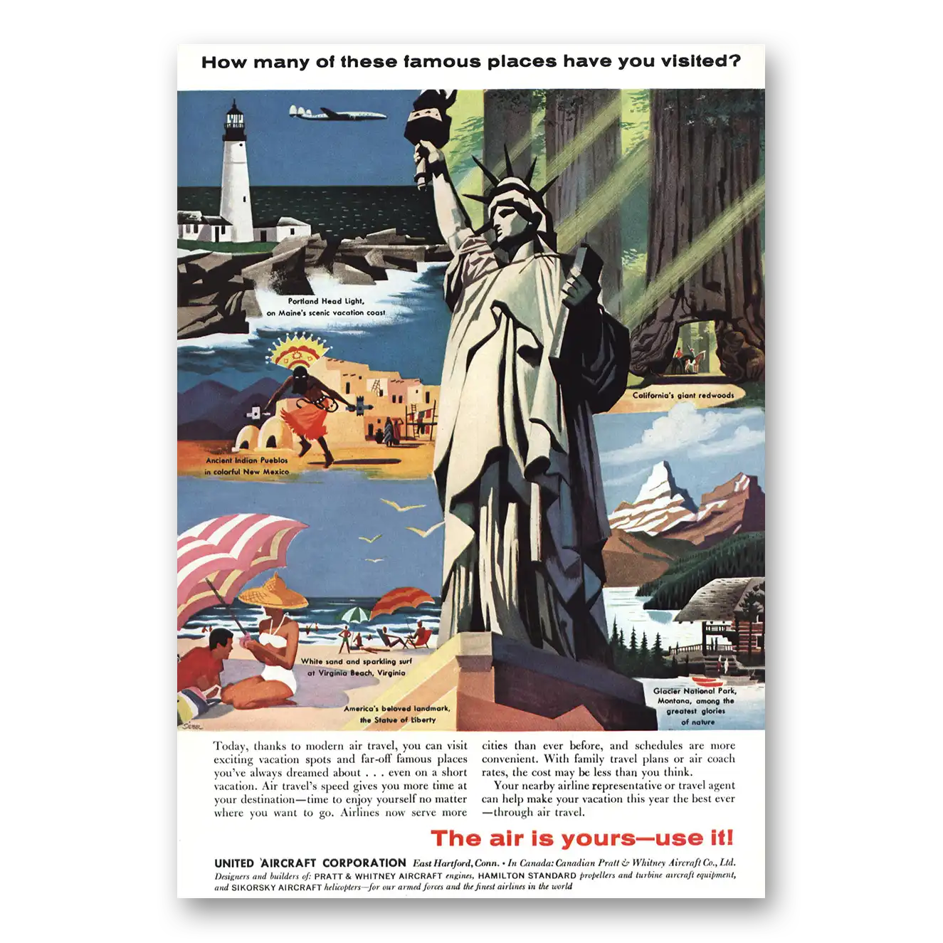 1957 United Aircraft Print Ad | Famous Places