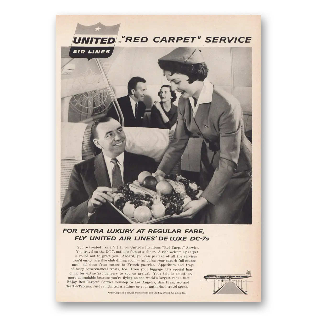 1957 United Airlines Print Ad | Red Carpet Service Print Ad