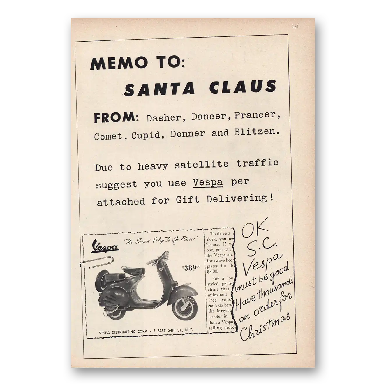 1957 Vespa Scooter Print Ad | Santa Claus