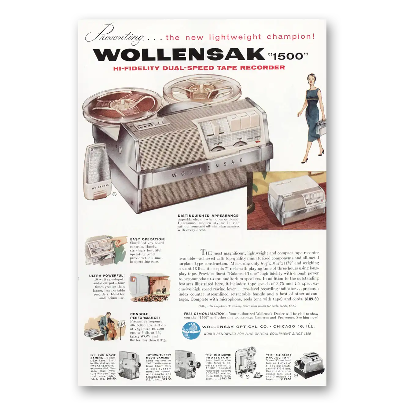 1957 Wollensak Tape Recorder Print Ad | Hi Fidelity