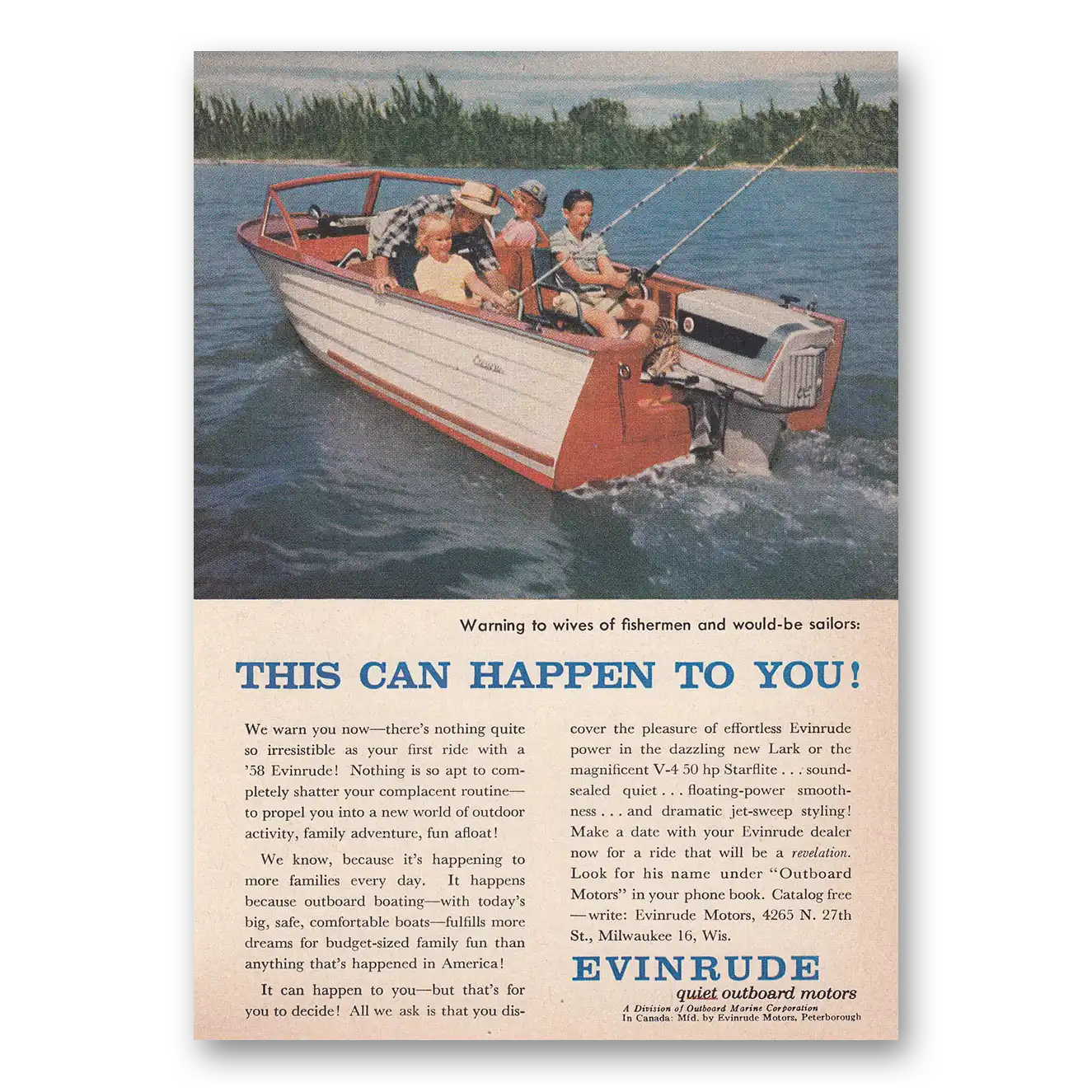 This is an original 1958 Evinrude print ad published by Evinrude.