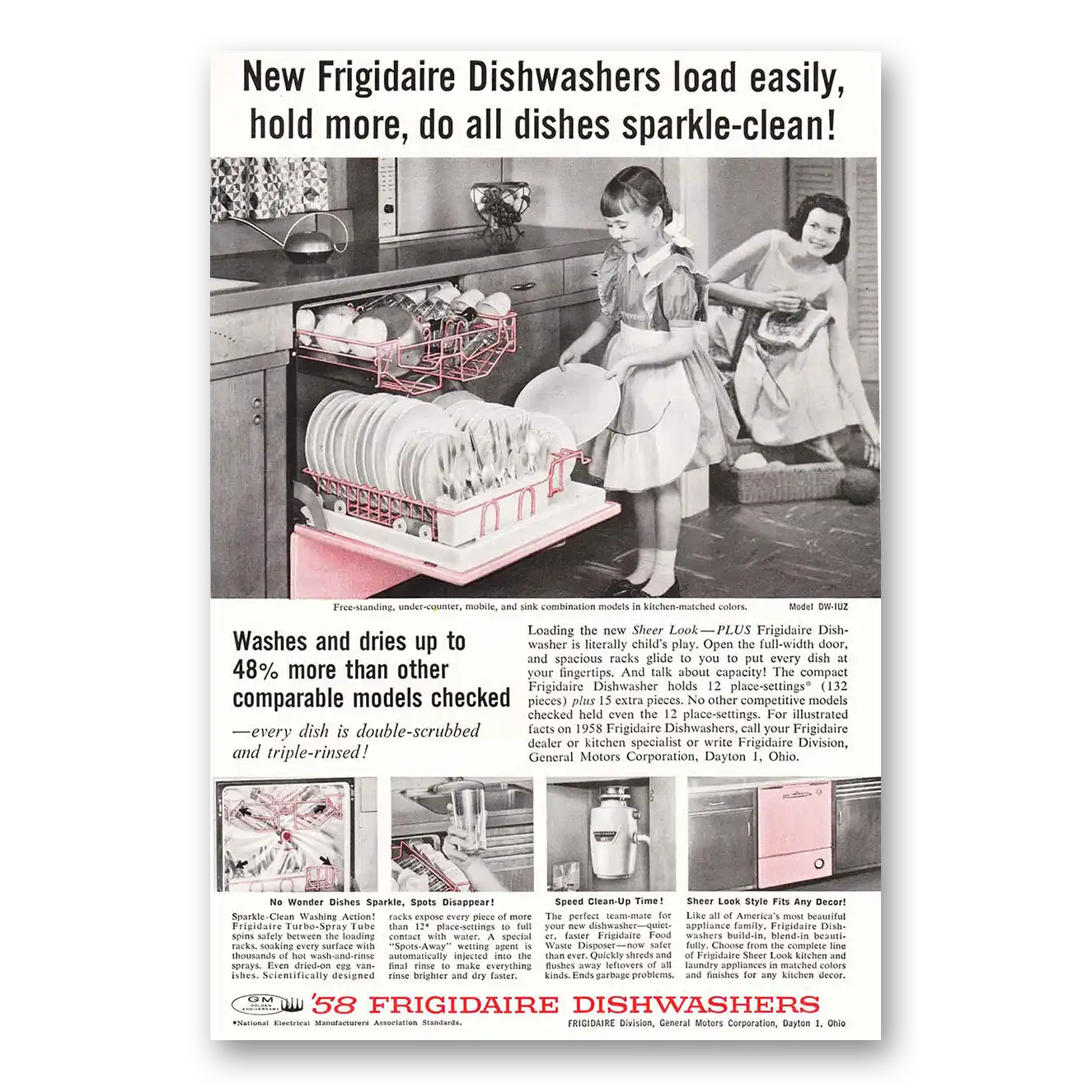 1958 Frigidaire Dishwasher Print Ad | Sparkle Clean