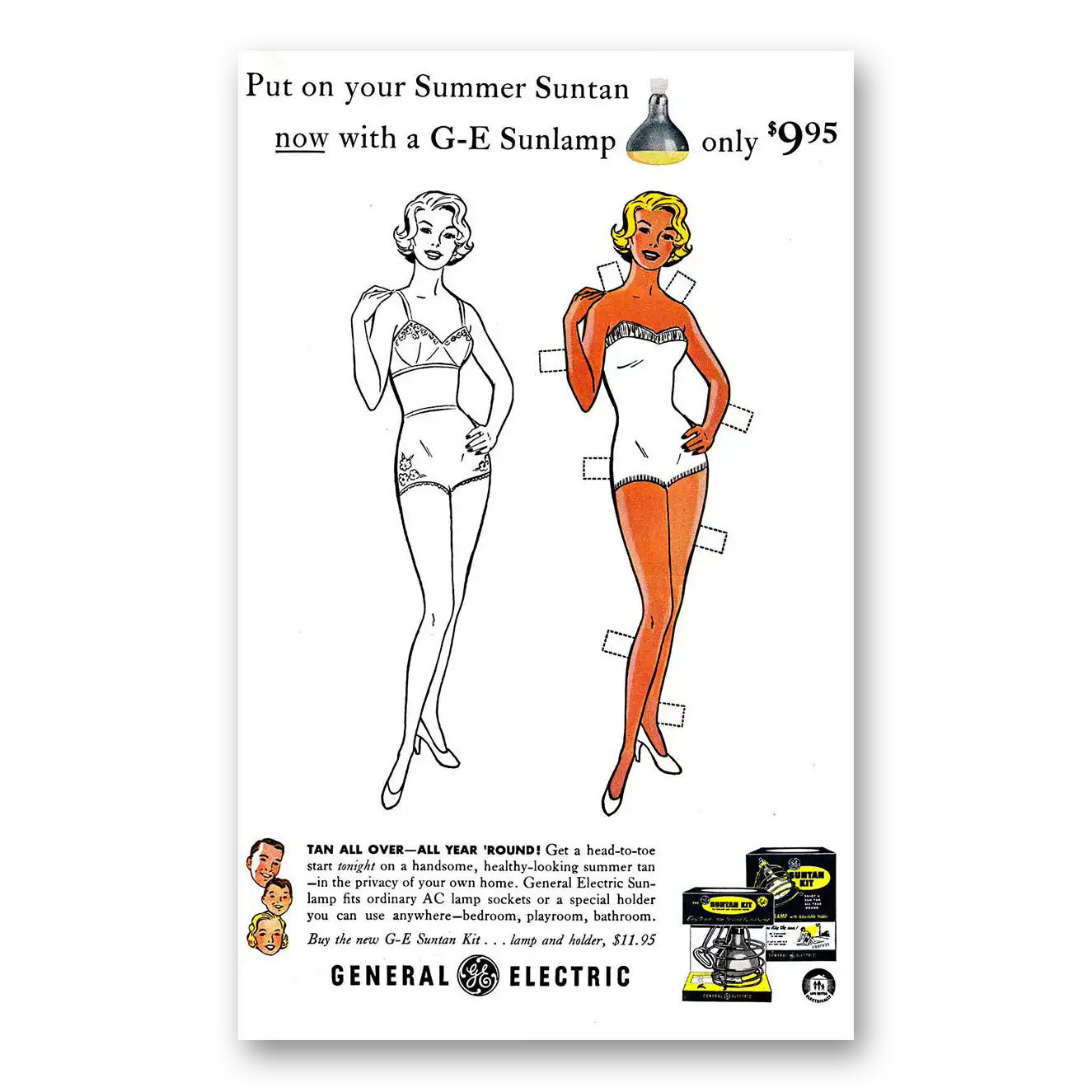 This is an original 1958 General Electric Sunlamps print ad published by General Electric.