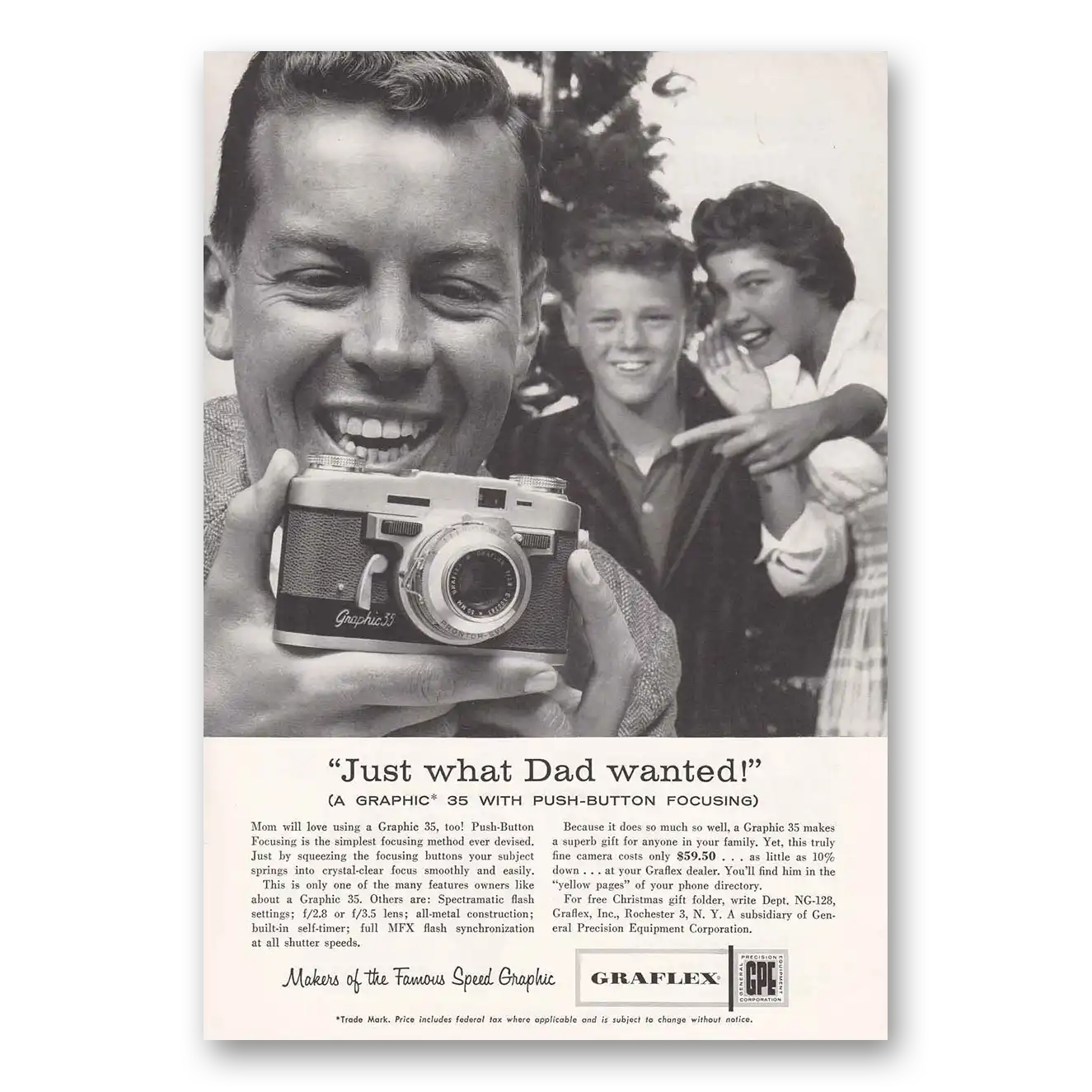 1958 Graflex Graphic 35 Camera Print Ad | Dad Wanted