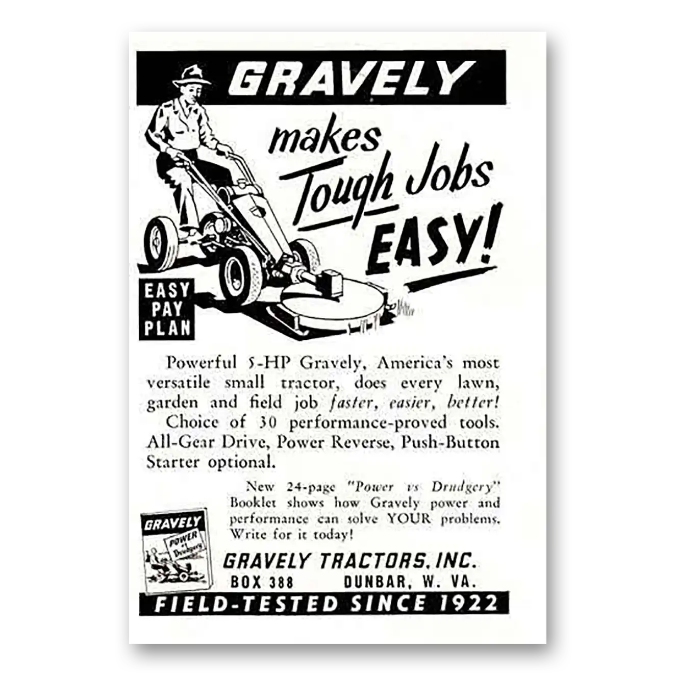 1958 Gravely Mowers Print Ad | Tough Jobs Easy