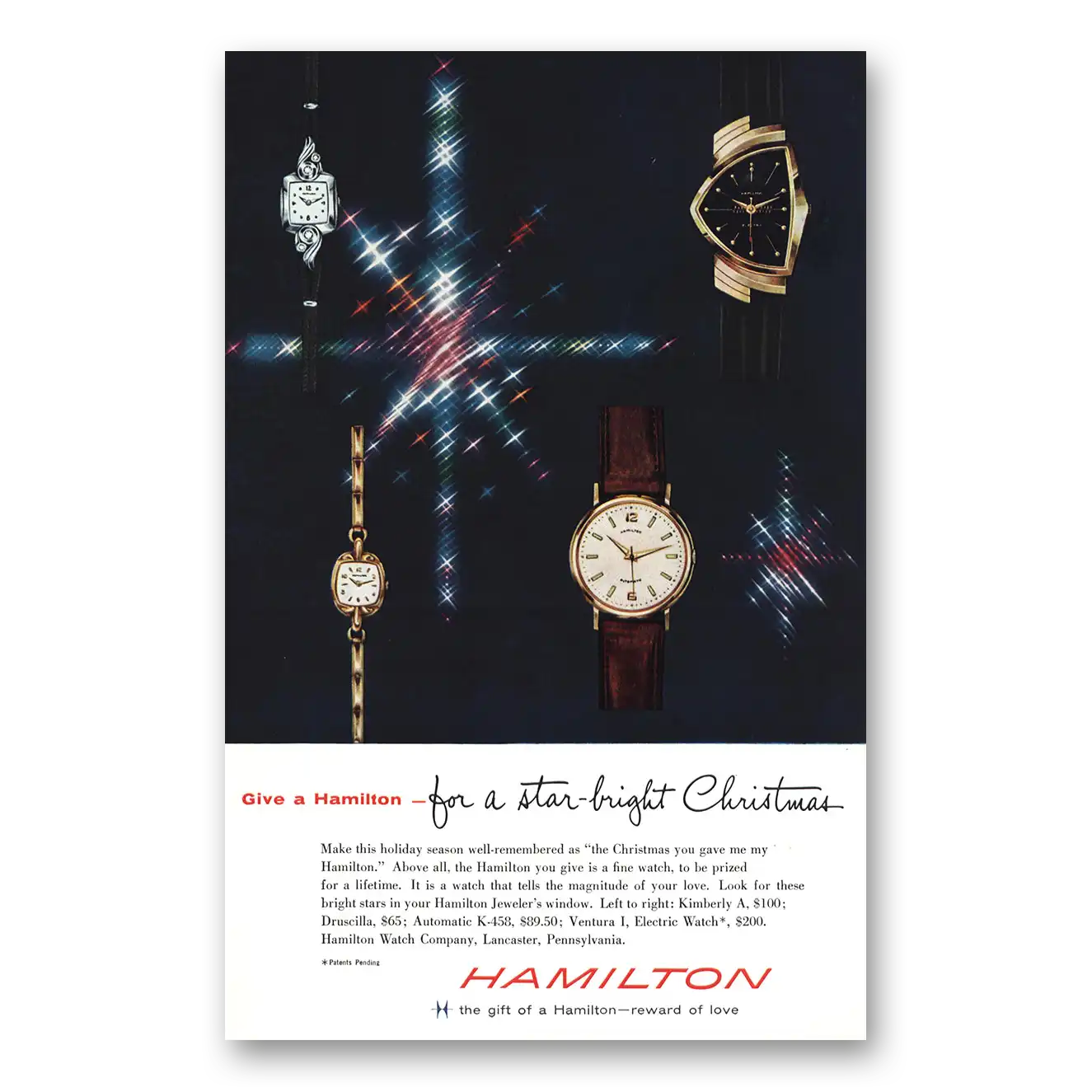 1958 Hamilton Watch Print Ad | Star Bright Christmas