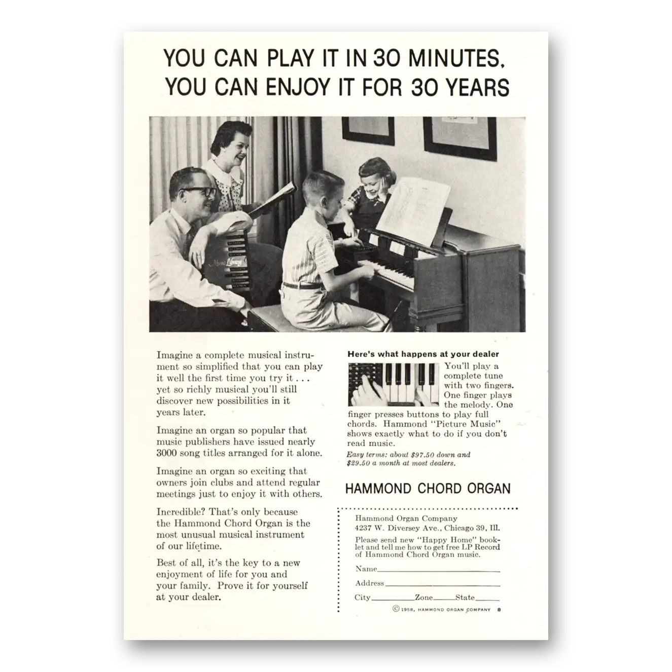 This is an original 1958 Hammond Organ print ad published by Hammond Organ.
