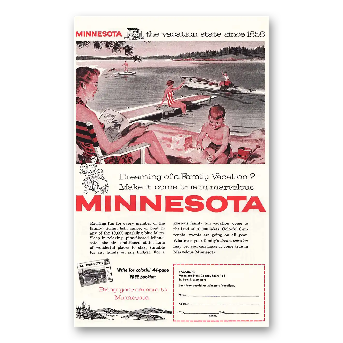 This is an original 1958 Minnesota print ad published by Minnesota Tourism.