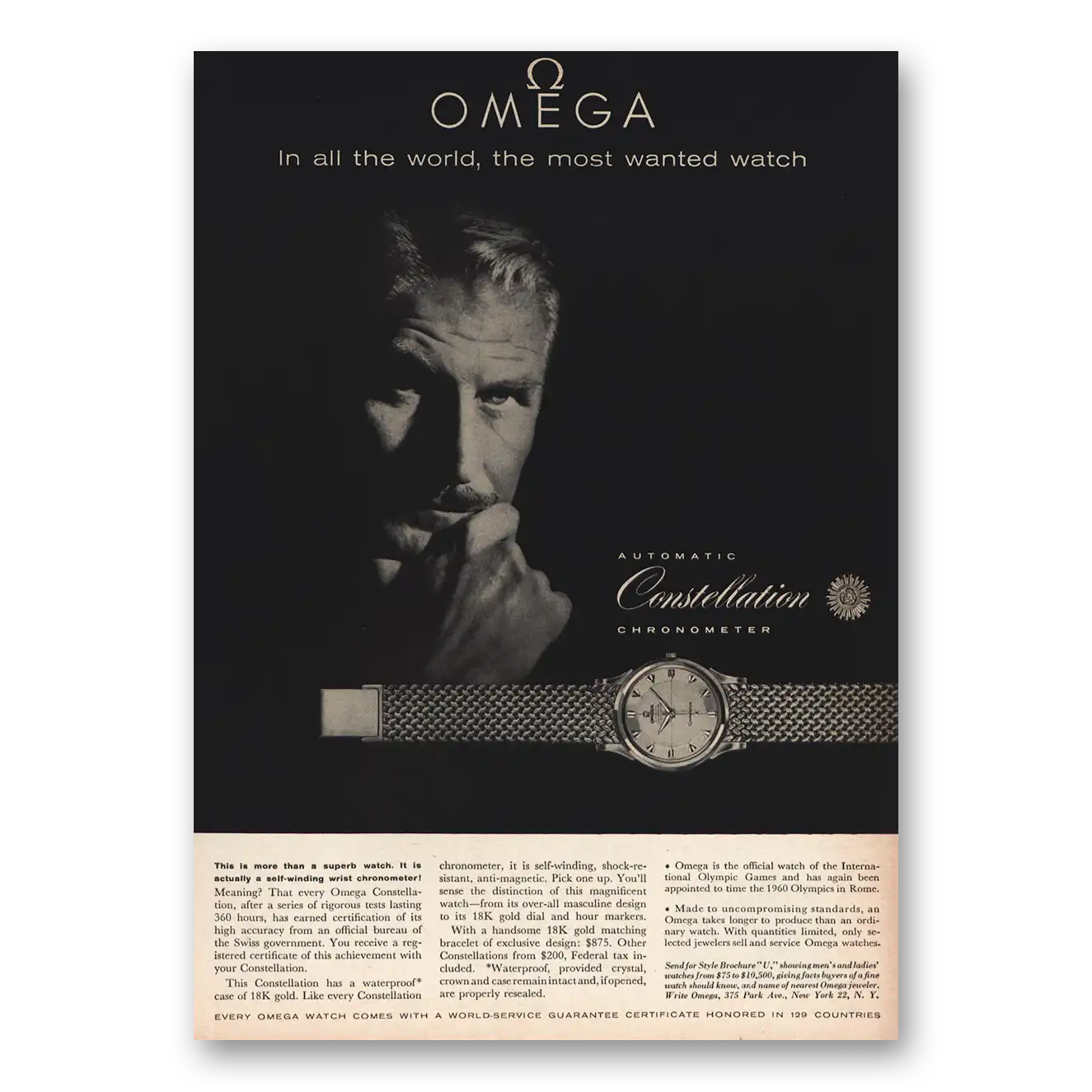 This is an original 1958 Omega Watch print ad published by Omega Watch.